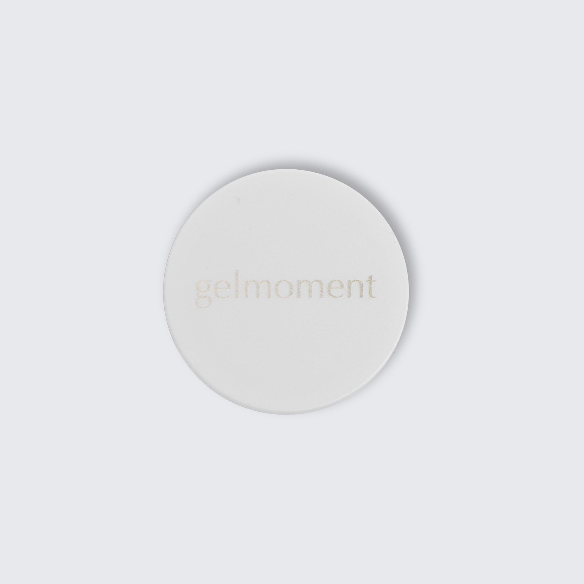 Available in 4 different colours: black, pink, white, and grey. All branded with the gelmoment logo.